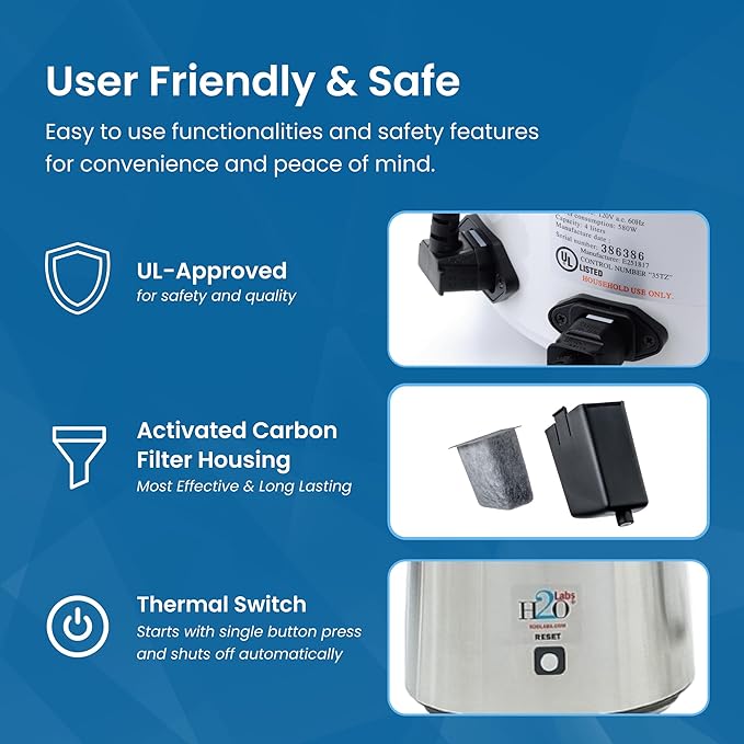 - Everything You Need: Along with your water distiller and glass carafe, you'll receive a 6-pack of exclusive H2o Labs carbon pods, a large jar of cleaning crystals for hard water scale, and an informative, easy-to-understand instruction manual.