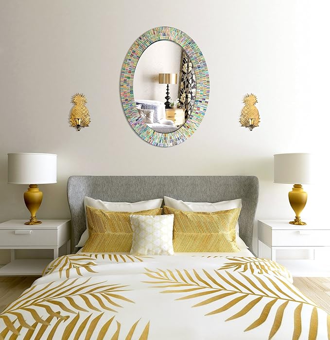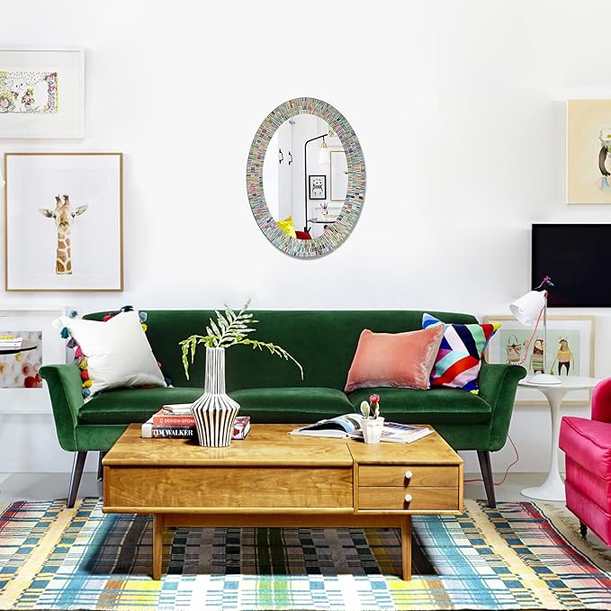 Bohemian Rainbow Wall Mirror -Glass Mosaic Decorative Wall Mirror, Multi Color Spectrum Wall Mountable, Oval Multi-Color Framed Mirror (32 in. x 24 in.)
