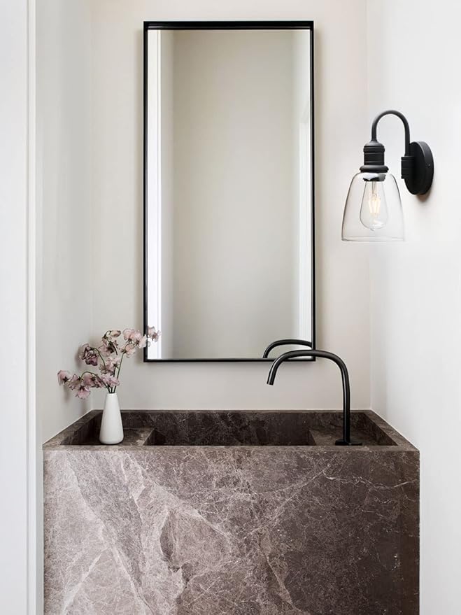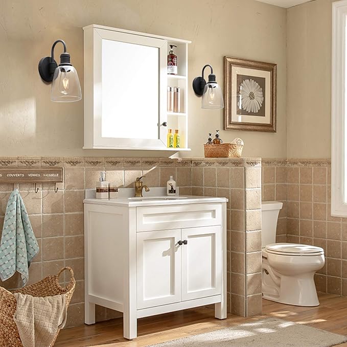 1-Light Vintage Wall Sconce, Yosoan Black Industrial Fixture Light with Elegant Gooseneck Curved Rod, Indoor Clear Glass Shade Wall Lamp Lighting for Bathroom Porch Kitchen Living Room Restaurant