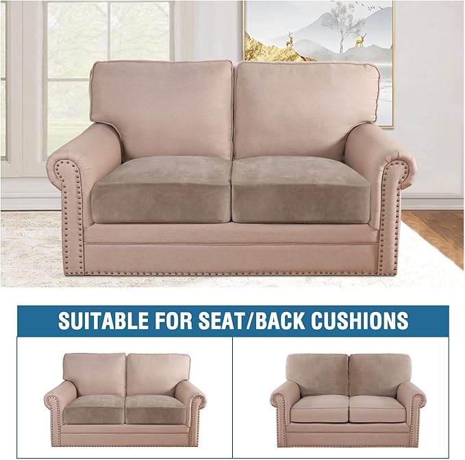 H.VERSAILTEX Velvet Stretch Couch Cushion Cover Plush Cushion Slipcover for Chair Loveseat Sofa Cushion Furniture Protector Seat Cushion Sofa Cover (2 Piece Medium Sofa Cushion Covers, Taupe)
