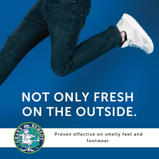 - Effective Odor Elimination: Gran's Remedy neutralizes the organisms that cause foot and shoe odors. This ensures long-lasting freshness, keeping your feet and shoes odor-free throughout the day.