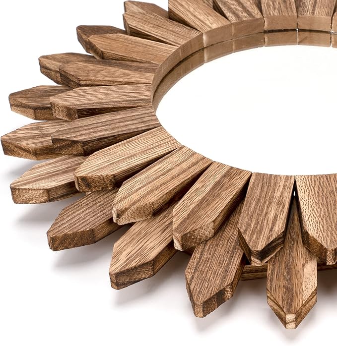 - Boho Wall Decor 12 In Mirror: The design of wood sunburst base on the element of boho style, it will be a nice boho wall art and goes well with your boho decor, farmhouse decor country rustic decor,modern deocr style; A perfect room decorations for your bedroom, living room, bathroom, kitchen, fireplace, entryway, home office, school, new partment, guest room of hotel