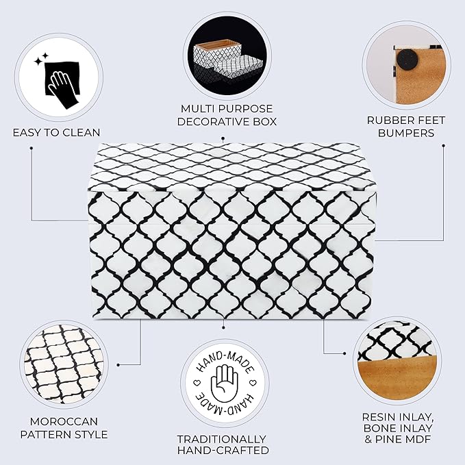 Handicrafts Home Handmade Moroccan Pattern Inspired Decorative Box - Large Storage Organizer for Neck Chains, Watches, Memory Keepsakes - Boho Style Treasure Box, Multipurpose Gift - B&w, 10x5x5