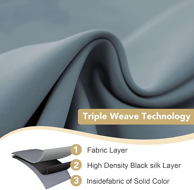 - MULTIPLE FUNCTIONS: These premium blackout curtains are made by innovative technology specially yarn. Ultra soft, super smooth and excellent silky. High performance on thermal insulated, room darkening, noise reducing, energy saving / efficiency and privacy protection