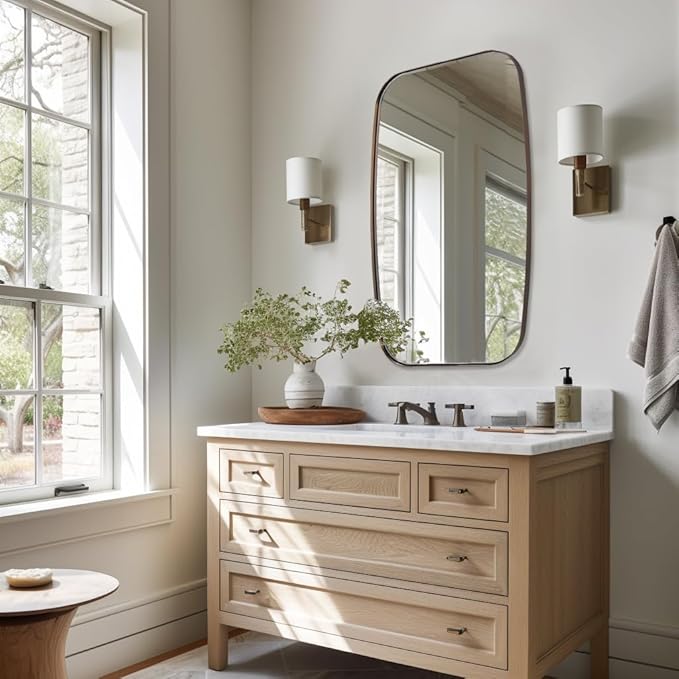 - True Reflection: This vanity bathroom mirror features a 4mm HD glass surface, delivering flawless, distortion-free reflections. Its scratch-resistant and shatterproof design ensures durability, while the easy-to-clean surface maintains a perfect shine with minimal effort