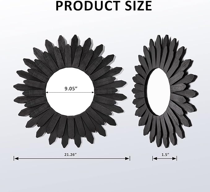 - Easy to Hang—Measure at 21 inch diameter with wood frame and diameter of 9 inch for mirror; Hang this stunning mirror in your bedroom over your bed, in your hallway or entryway, over your living room sofa.No any assembly, quite easy to hang on the wall; Comes with anchor and screw
