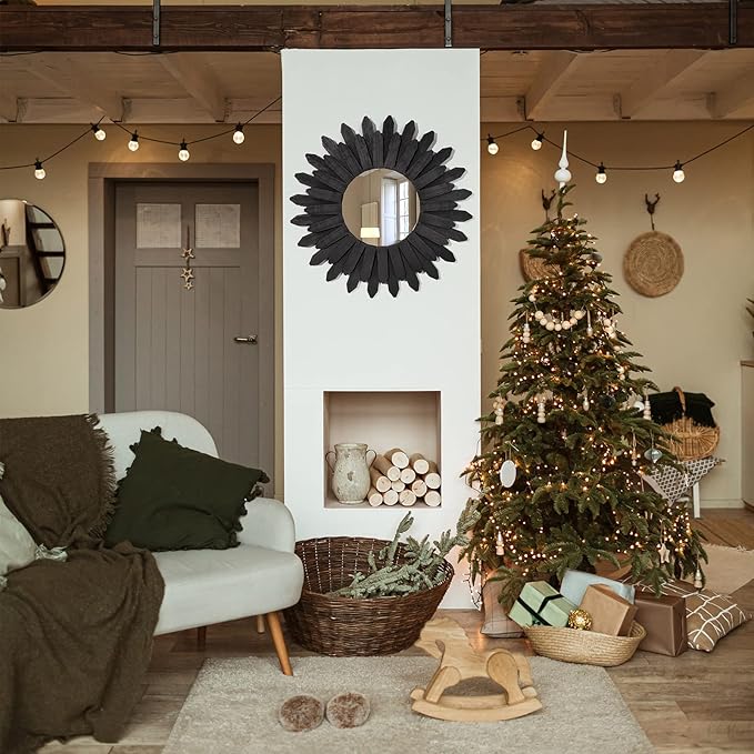 - Home Decorations for Living Room—This decorative mirror made of solid wood, torched finished features carbonized black color, and the beautiful wood texture makes it an antique accent. This stylish and eye-catching decor piece is the perfect addition to your house