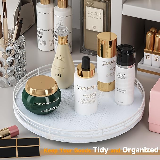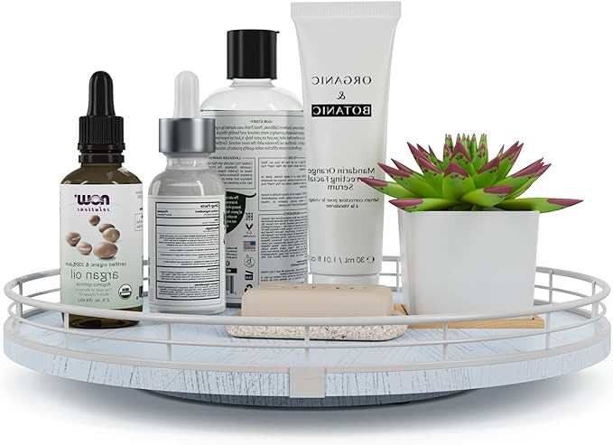 - πππππππππ πππ:This lazy susan is enough to be used nearly anywhere, perfect in the bathroom, bedroom, laundry room, office, etc. Keep your bathroom counter organized with this bathroom tray for toiletries, lotion, washcloth, cotton swabs, soap and scrubber. Using a bathroom vanity tray to keep all your daily skin care and makeup. On the bedroom counter, ideal to organize perfumes. Good idea for the office desk and craft room to organize. Keep your coffee stuff perfect at your coffee