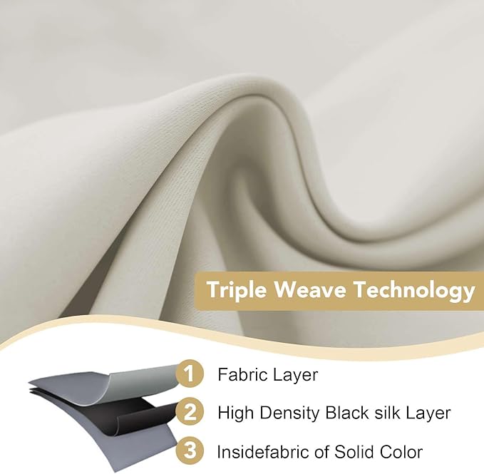 - MULTIPLE FUNCTIONS: These premium blackout curtains are made by innovative technology specially yarn. Ultra soft, super smooth and excellent silky. High performance on thermal insulated, room darkening, noise reducing, energy saving / efficiency and privacy protection