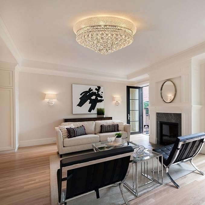 12-Light Crystal Flush Mount Chandelier Ceiling Light Fixture for Living Room Dining Room Bedroom Foyer Entryway Hallway Closet Bathroom (Chrome D24)