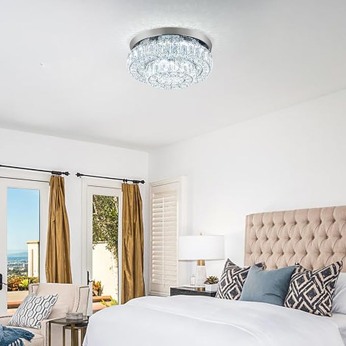 - ✅3 Sides Crystal & Modern Design: this 2-tier crystal chandelier ceiling light is made of K9 crystals and polished sturdy stainless steel, featuring with 2 tier crystal rings and 3 sides crystals, you can see the lights coming out from every angles, you can also enjoy the bright lighting and luxury decoration at the same time .