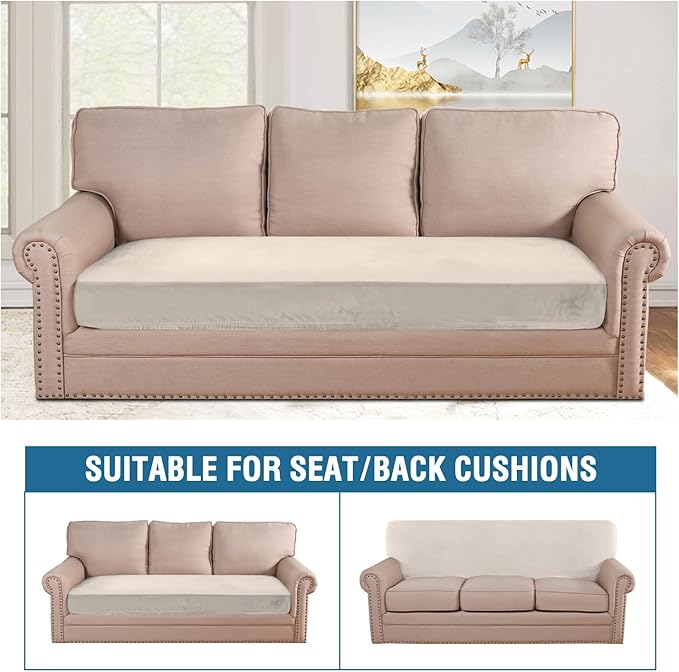 H.VERSAILTEX Velvet Stretch Individual Couch Cushion Cover Plush Cushion Slipcover for Loveseat Sofa Cushion Furniture Protector Seat Cushion Sofa Cover (1 Piece Sofa Cushion Cover, Ivory)