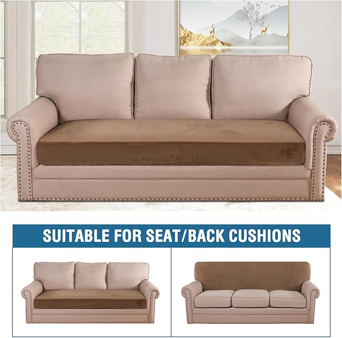 H.VERSAILTEX Velvet Stretch Individual Couch Cushion Cover Plush Cushion Slipcover for Loveseat Sofa Cushion Furniture Protector Seat Cushion Sofa Cover (1 Piece Sofa Cushion Cover, Camel)