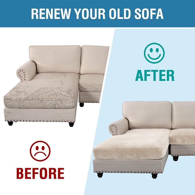 - UPGRADED THICKER: Each individual cushion cover fits up to 19.6-29 inch width, 21.6-30.5 inch depth, 3-8 inch thickness while the chaise cover fits up to 32-38 inch width, 54-62 inch depth, 3-8 inch thickness. Feature one-size-fits-most, kindly measure before ordering