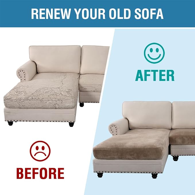 - INCREDIBLY COMFORTABLE VELVET: Products passed GLOBAL RECYCLED STANDARD certificate.This innovated stretch sofa slipcovers are constructed with 4 PIECES,including 1 Chaise cover and 3 individual cushion covers. Crafted from luxurious velvet plush fabric, feature thick, soft, smooth, anti-wrinkle, no fading, durable as well as highly stretch. Protect your cushion furniture from daily wears and tears, stains, kids, scratches from pet claws, dogs or accidental spills