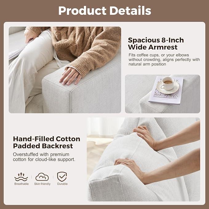 - HIGHER AND THICKENED SEAT - The seat height of the sofa is 18 inches, in comparison to similar products on the market, we have increased the height by approximately 25% in comparison to them.The seat cushion is 7 inches thick and made of high-quality foam with high-grade spring padding. It provides both support and a comfortable seating experience, with a medium firmness level (3 out of 5).