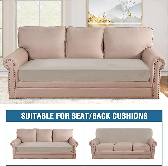H.VERSAILTEX Velvet Stretch Individual Couch Cushion Cover Plush Cushion Slipcover for Loveseat Sofa Cushion Furniture Protector Seat Cushion Sofa Cover (1 Piece Sofa Cushion Cover, Oatmeal)