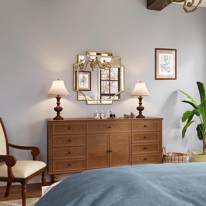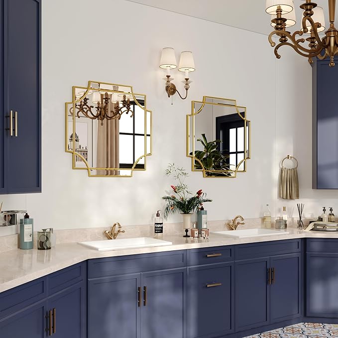 - UNTIQUE DESIGN. If your want some intricacies/interest to the pattern - not just a simple round or rectangle, this mirror will definitely be your perfect choice. Its sophisticated cutout corner accents along the inner and outer edges of the frame complete the look with added decorative detail. It will be a beautiful addition to any wall and an essential element in your home decor.