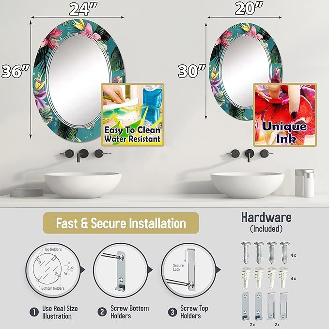 - EXCLUSIVE TECHNOLOGY: Our exclusive technology allows for the ink to be raised on the mirror, yet remain scratch proof and fade resistant. This Oval mirror whether you display it over a couch or your bathroom vanity will bring your space together so elegantly.