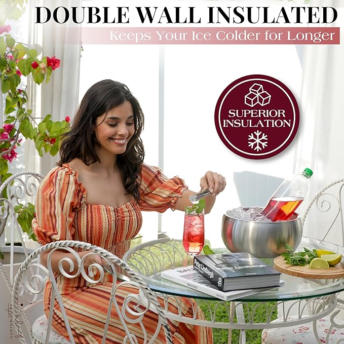 - KEEP IT OR GIFT IT Our ice buckets for parties are perfectly designed for both indoor and outdoor use, the double-wall insulation keeps ice cold for hours, ideal for parties, picnics, barbecues, and gifting to your loved ones with premium packaging