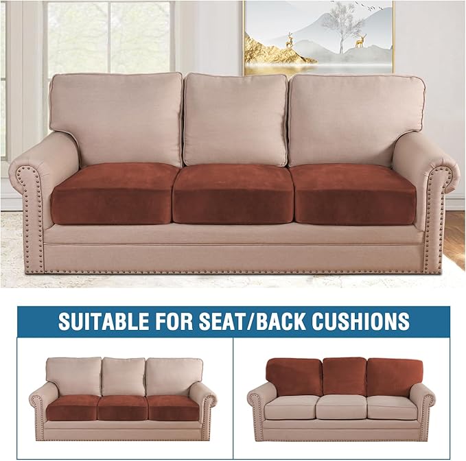 H.VERSAILTEX Velvet Stretch Couch Cushion Cover Plush Cushion Slipcover for Chair Loveseat Sofa Cushion Furniture Protector Seat Cushion Sofa Cover (3 Piece Sofa Cushion Covers, Rust)