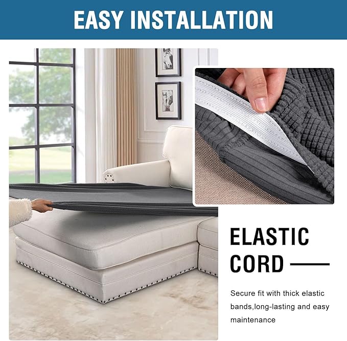 - NON SLIP: Effortless for installation (guide photos on selling page), sewn with thick elastic loops to cover the bottom edges. It is easy to install and take off, making your home more harmony, high recommended for both leather and cloth furniture