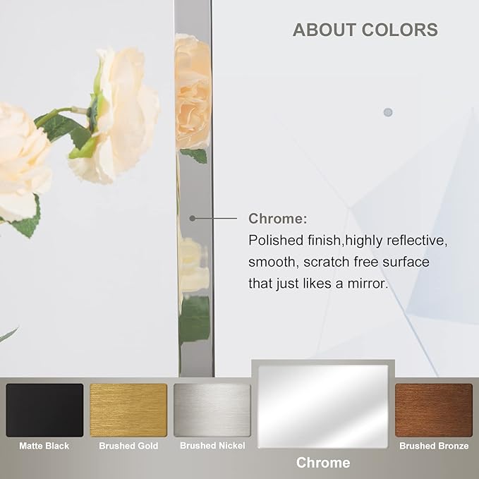 - Excellent Performance: A sleek, modern stainless steel metal frame surrounds a unique oblong mirror; sets it apart from traditional oval or rectangular mirrors; polished chrome finish complements your bathroom; adds light and space to the room