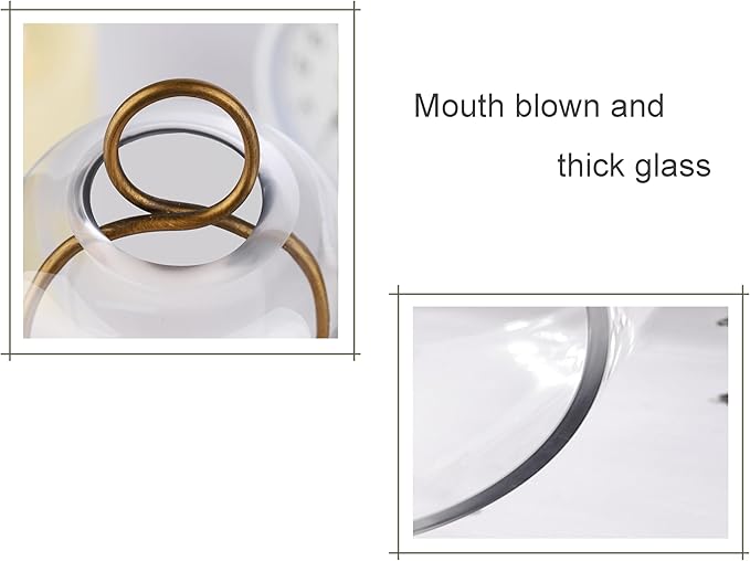 12" High Versatile Modern Metal Hurricane Lantern with Handmade Sturdy Glass Dome for 3" Pillar Candle & Plants (Brass, 5"x12")