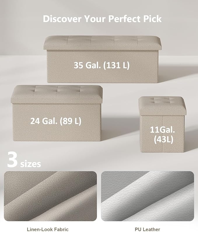 - [Comfortable Seating] Filled with high-density foam and covered in linen-look fabric, this storage bench provides a soft, supportive, and breathable seat for optimal comfort