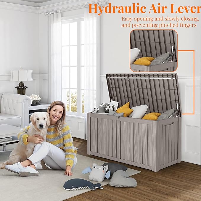 - ADAPTABLE TO VARIOUS SCENES: Whether used as an indoor laundry storage chest or an outdoor deck box container for items like outdoor cushions, garden tools, pool accessories, and sports equipment, this patio storage box provides abundant space. It's also versatile as a side table, yard seat, storage bench, or footrest