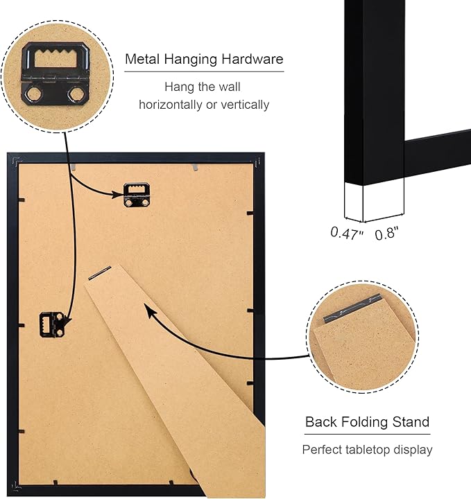 - Multiple Display:10 by 14 photo frames come with hanging hardware, which can be hung on the wall, or displayed on the tabletop through the stand