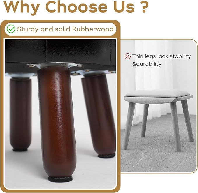 - 【Anti-Slip Design】- These leather foot stools small ottoman rubber legs come with dedicated felt pads to prevent scratches on floor and keep it from sliding.Wood leg with non-slip felt pad is quiet when moving, and can avoid leaving scratches on floor.The small footstool is perfect for small spaces and is compact enough not to get in anyone's way.