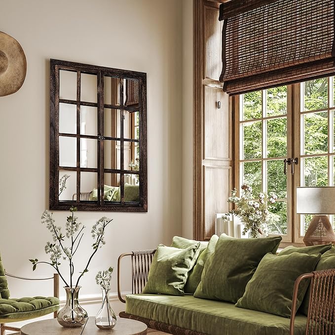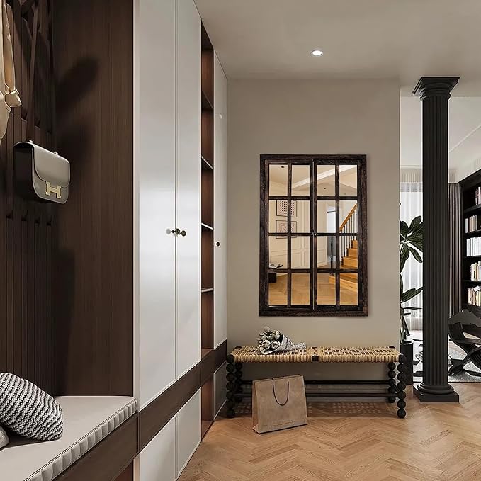 - 【Rustic Farmhouse Style】This wall mirror features a distressed wood windowpane design, adding a charming rustic farmhouse touch to any space. Perfect for those who love vintage-inspired or cottagecore aesthetics.
