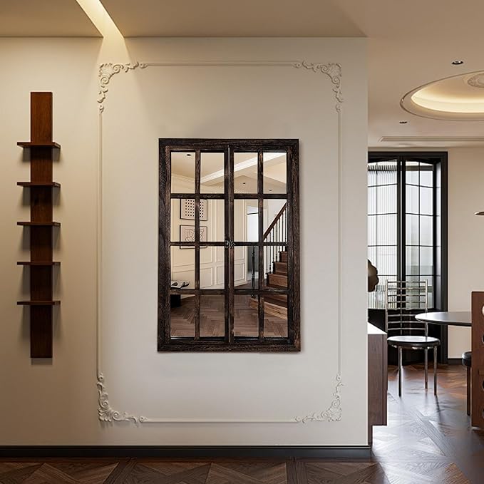 - 【Rustic Farmhouse Style】This wall mirror features a distressed wood windowpane design, adding a charming rustic farmhouse touch to any space. Perfect for those who love vintage-inspired or cottagecore aesthetics.