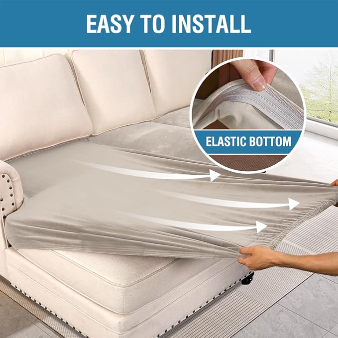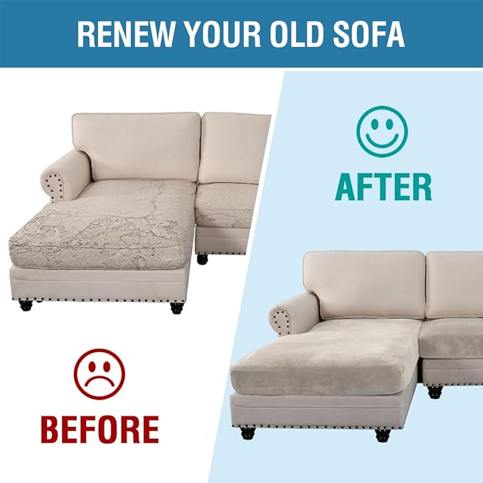 - INCREDIBLY COMFORTABLE VELVET: Products passed GLOBAL RECYCLED STANDARD certificate.This innovated stretch sofa slipcovers are constructed with 3 PIECES,including 1 Chaise cover and 2 individual cushion covers. Crafted from luxurious velvet plush fabric, feature thick, soft, smooth, anti-wrinkle, no fading, durable as well as highly stretch. Protect your cushion furniture from daily wears and tears, stains, kids, scratches from pet claws, dogs or accidental spills