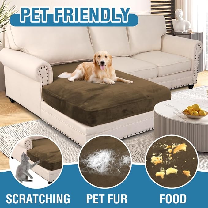 H.VERSAILTEX Velvet Stretch Individual Chaise Cover Sectional Couch Covers for L Shaped Sofa Both Left/Right Furniture Protector Seat Cushion Sofa Cover (1 Piece Chaise Cover, Bronze Brown)