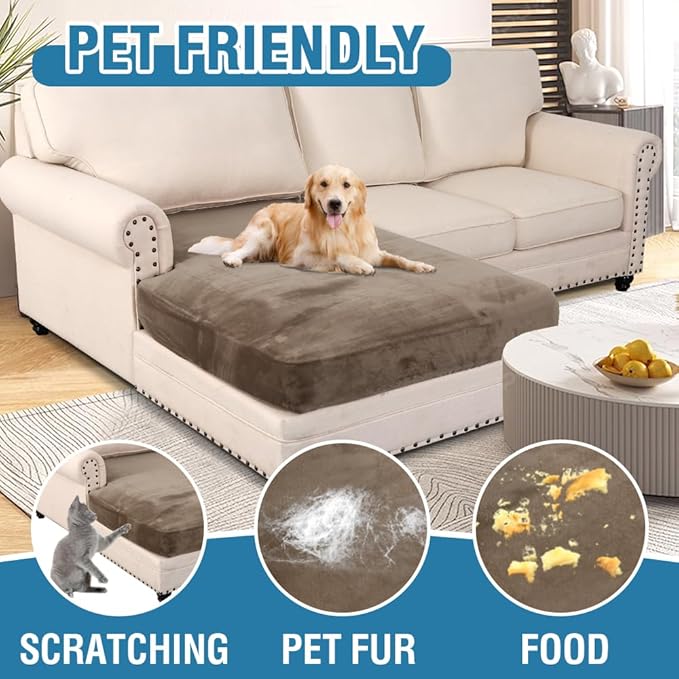 H.VERSAILTEX Velvet Stretch Individual Chaise Cover Sectional Couch Covers for L Shaped Sofa Both Left/Right Furniture Protector Seat Cushion Sofa Cover (1 Piece Chaise Cover, Mocha)