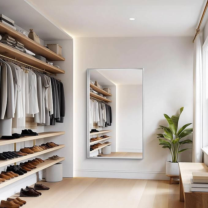 - Sleek & Sturdy Aluminum Alloy Frame This elegant silver bathroom mirror features a lightweight yet durable aluminum alloy frame, designed to resist deformation, chipping, and corrosion. The slim metallic profile adds a modern touch, elevating your space with a luxurious finish. Perfect as a wall-mounted or hanging mirror, it combines strength, style, and longevity