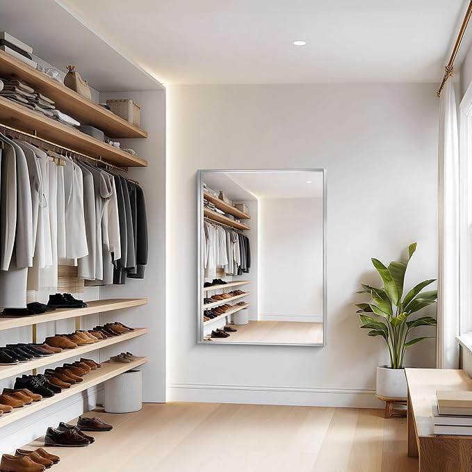 - Sleek & Sturdy Aluminum Alloy Frame This elegant silver bathroom mirror features a lightweight yet durable aluminum alloy frame, designed to resist deformation, chipping, and corrosion. The slim metallic profile adds a modern touch, elevating your space with a luxurious finish. Perfect as a wall-mounted or hanging mirror, it combines strength, style, and longevity