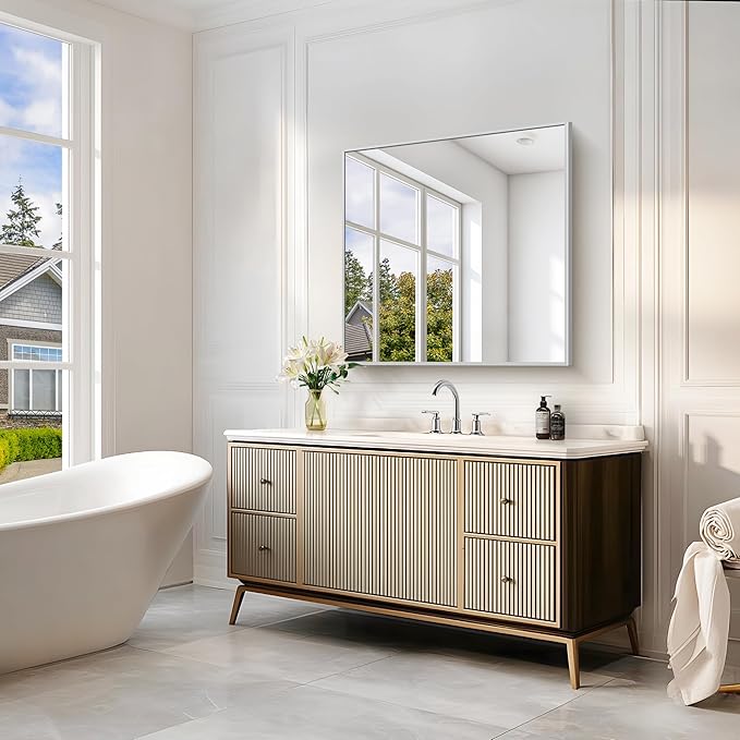 - MULTI-SCENES: Large bathroom mirror is the ideal size to place above the bathroom sink, thin frame will make your whole room unique and elegant, bathroom mirror is a good choice to decorate your bedroom, living room, hair salon, etc