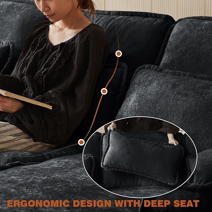 - Skin-Friendly Fabric: The chenille fabric is soft and skin-friendly, providing a soft and comfortable touch and adding a sophisticated and luxurious look to the comfy cloud couch. And each pillow of this cloud sofa is removable for easy cleaning.