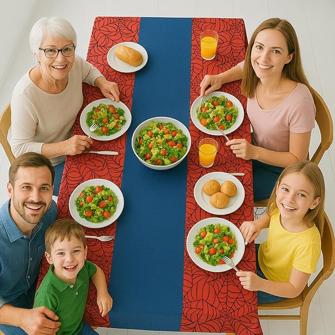 - ✔ 2-in-1 Eco Table Cover: This innovative set combines a vibrant red plastic tablecloth with a matching blue runner for instant coordinated style. The integrated design eliminates the need for separate pieces—reducing waste while saving storage space.
