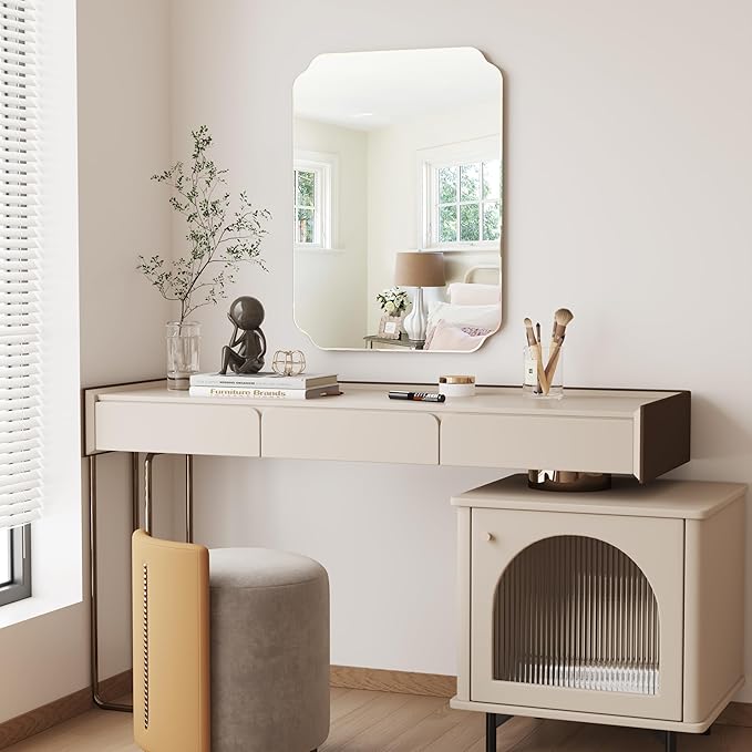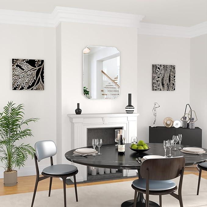 - FLEXIBLE MULTI-SCENE APPLICATION - Designed for hassle-free horizontal or vertical wall mounting, the beveled mirror edge complements diverse spaces—bathrooms, hallways, bedrooms, and living rooms—to create personalized decor effortlessly.